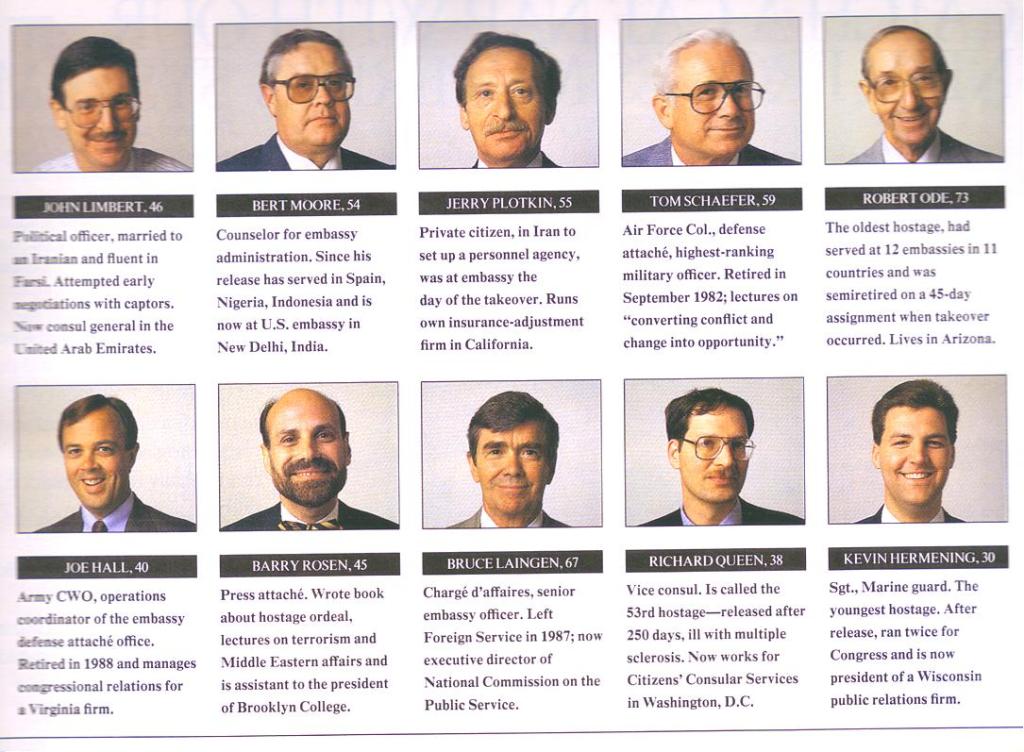 L. Bruce Laingen, 58, Bethesda, MD. Chargé d’affaires. One of three held in Iranian Foreign Ministry.