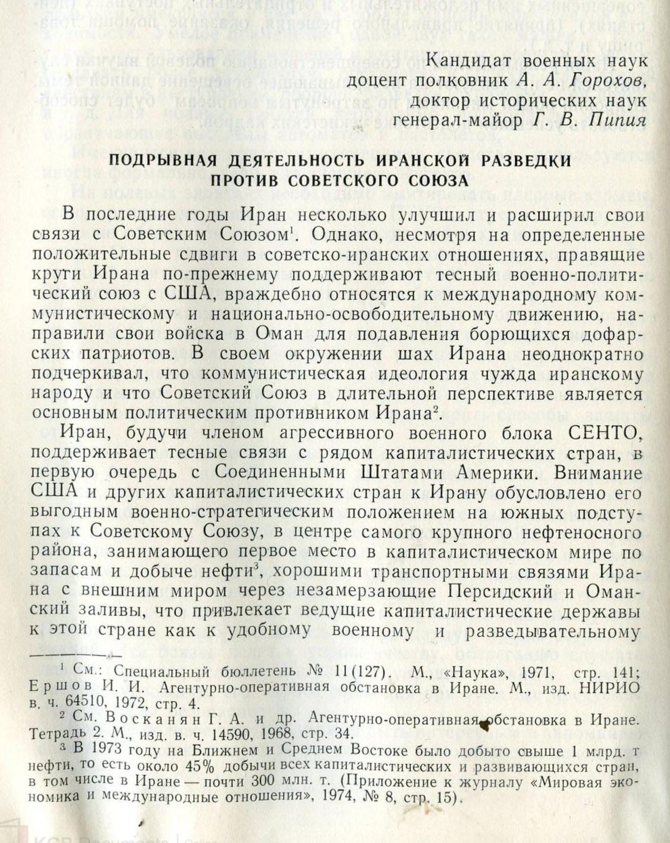 11. KGB Higher School Journal. Papers of the Higher School of the KGB. Article by Gorokhov AA, Pipiya GV on Iranian intelligence services; 1975. Summary available from: